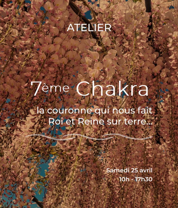 7ème chakra, la couronne qui nous fait Roi et Reine sur terre. Nous entrons dans l’espace de connexion au ciel en restant liés à la terre. Tout le travail réalisé dans les chakras du bas nous permet d’entrevoir les Lois Universelles, nous pouvons recevoir l’enseignement du monde sacré.