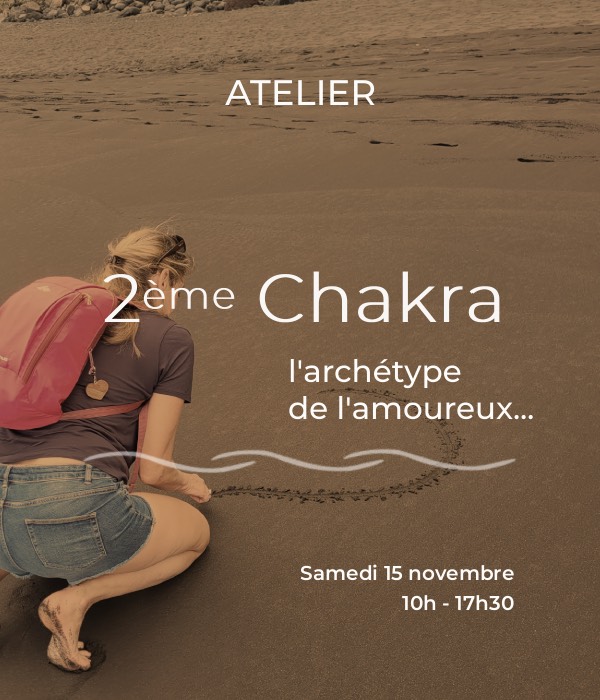 2ème chakra, l’archétype de l’amoureux, parle du sentiment d’être aimé et de notre désir. Associé à l’eau, c’est l’univers de l’émotionnel, là où je me perds et où je me retrouve. C’est la proposition de sortir de la polarité pour entrer dans le mouvement et la créativité.